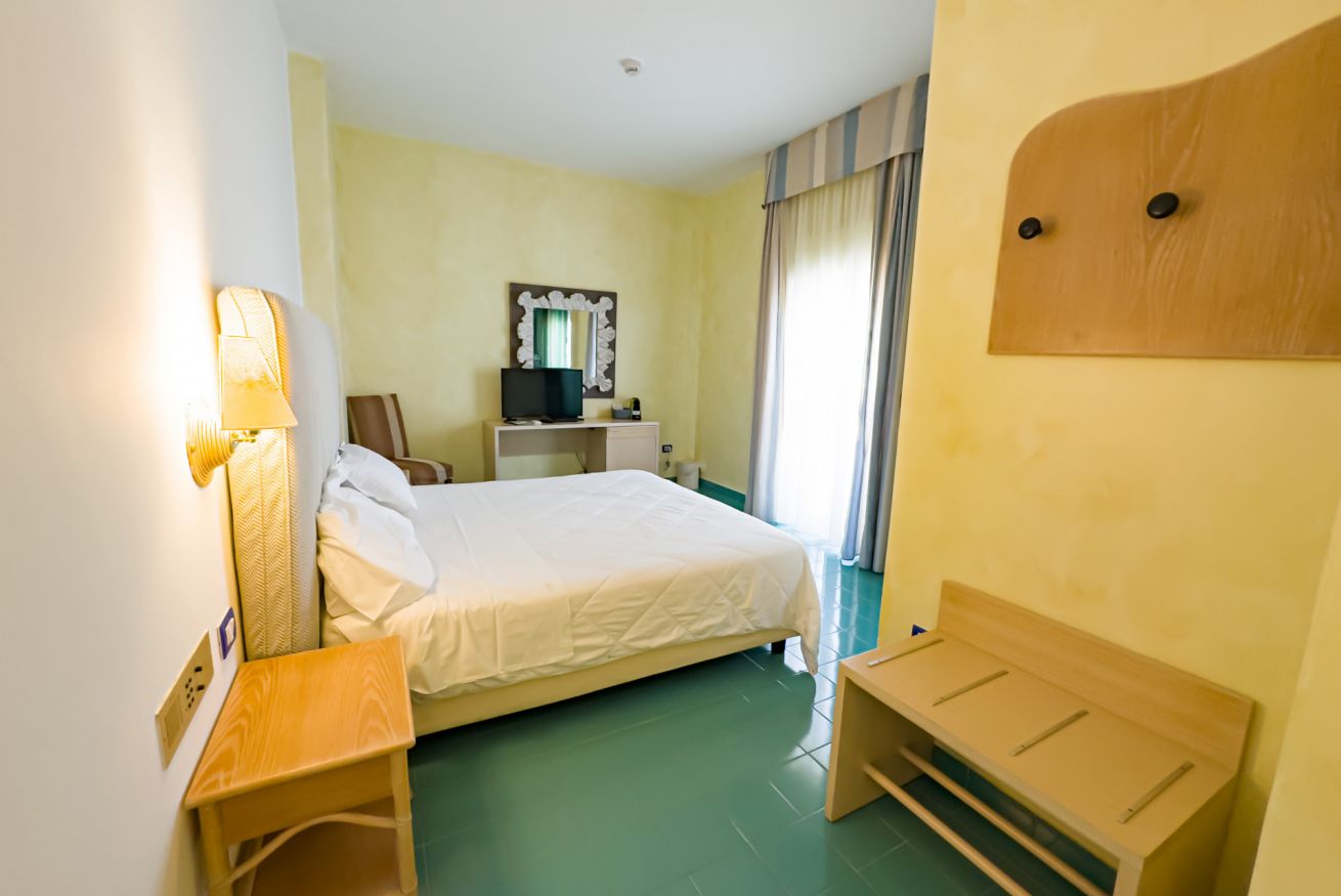 Eleganti e confortevoli sono immerse nel verde del lussureggiante giardino dell’hotel. Tutte le camere dispongono di climatizzatore, frigo bar, phon, tv, servizi con doccia e cassaforte.