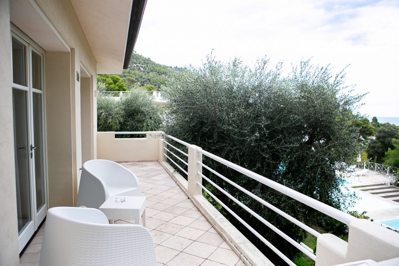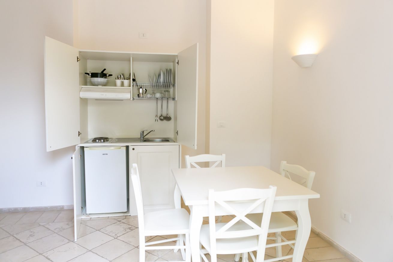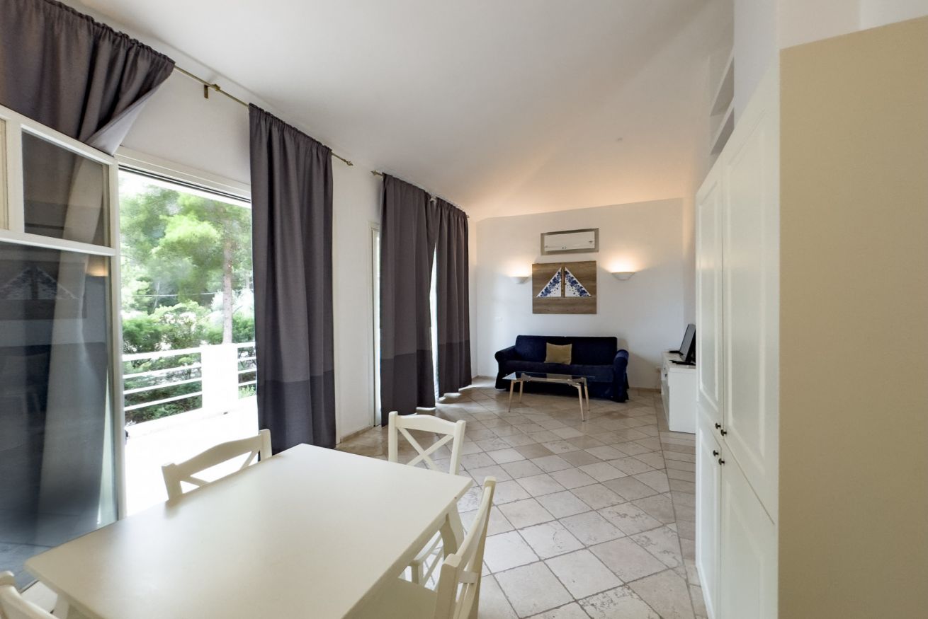 La struttura dispone di n.8 Villas Trilocale. Sono composti da tre ambienti di cui una camera matrimoniale, una camera doppia e un ampio soggiorno con angolo cottura. Situati al primo piano con ampio balcone. Ospitano fino a 5 persone.